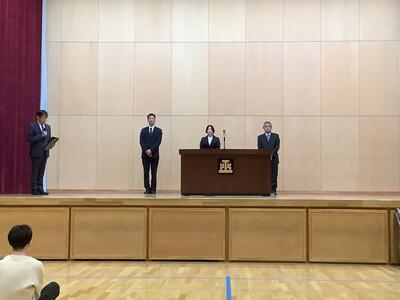 離任式では、退職・離任される3名の先生方からご挨拶をいただき、生徒へ温かいメッセージが送られました。これまでのご指導や関わりは、生徒たちの心にしっかりと刻まれています。